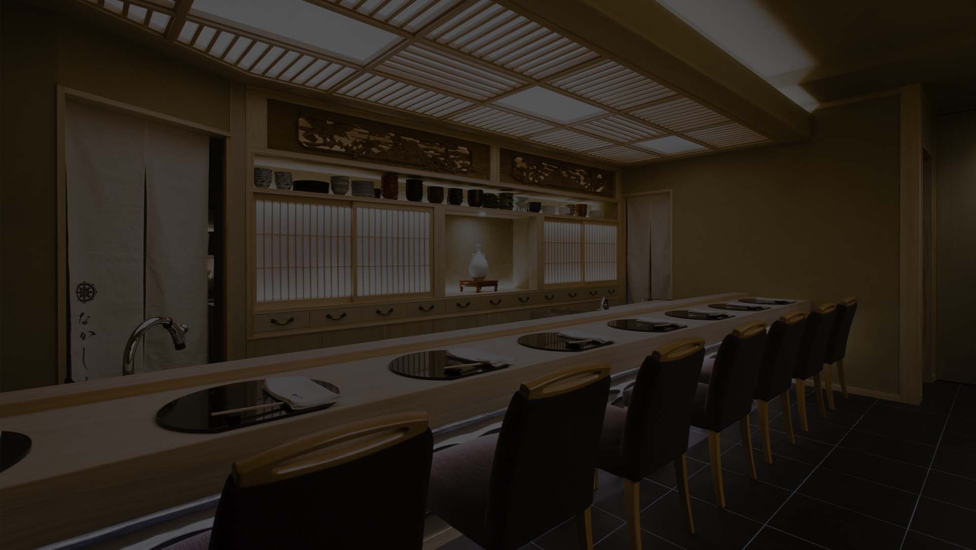 Beauty of Space Newly renovated into a counter-seating-centered dinging space in 2015, our counter table made of a solid piece of award-winning, Yoshino Hinoki welcomes you to the world of Nakashima. We created a space that chefs and patrons can have a same eye level and share the dining experience together, creating the feeling of live performance. Our dishes are composed to ensure that the most basic, innate characters of seasonal ingredients persist. With our carefully curated collection of antique and modern dishware, we hope you enjoy the sensibility of seasons and most of all, the finest flavor of ingredients through your dining experience with us.